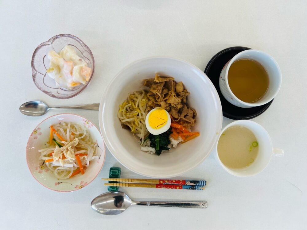 ビビンバ・バンサンスー・白湯スープ・フルーツヨーグルトです。