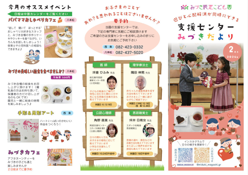 とってもかわいい2月の支援センターだよりが完成しました♥