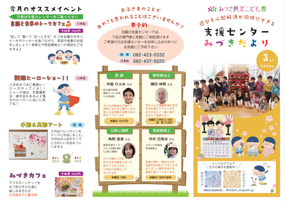 八本松みづき認定こども園子育て支援センターからのお知らせです。
