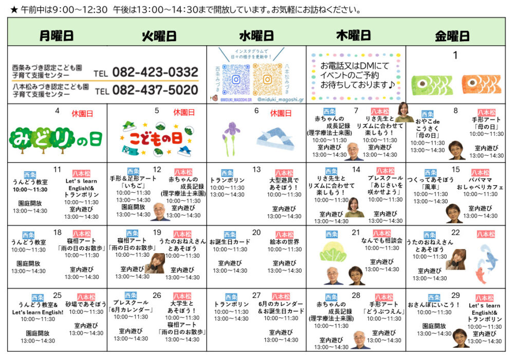 八本松みづき認定こども園子育て支援センターからのお知らせです。