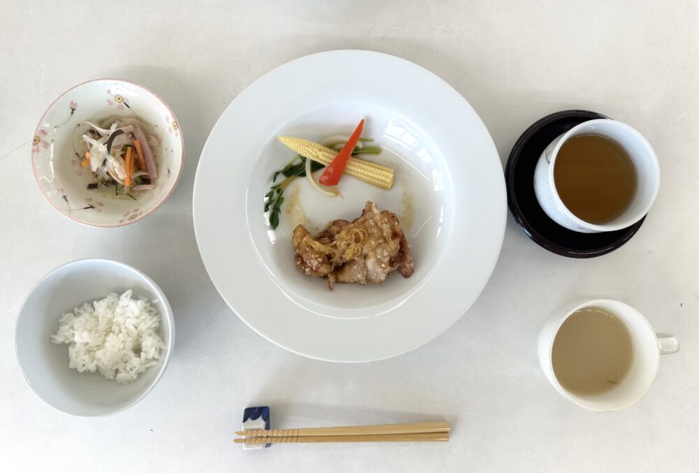 ごはん・ユーリンチー・中華和え・白湯スープ