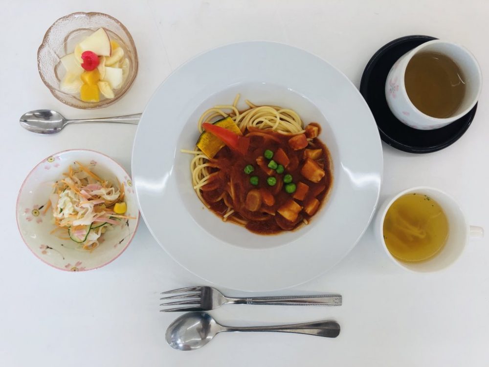 ペスカトーレ・コールスローサラダ・サフランスープ・フルーツミックスです。